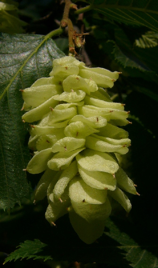 4 Fruchtstände hopfenähnlich, Frucht vollständig in die Fruchthülle eingeschlossen