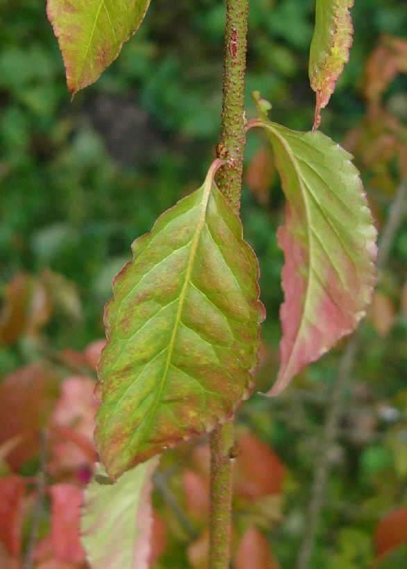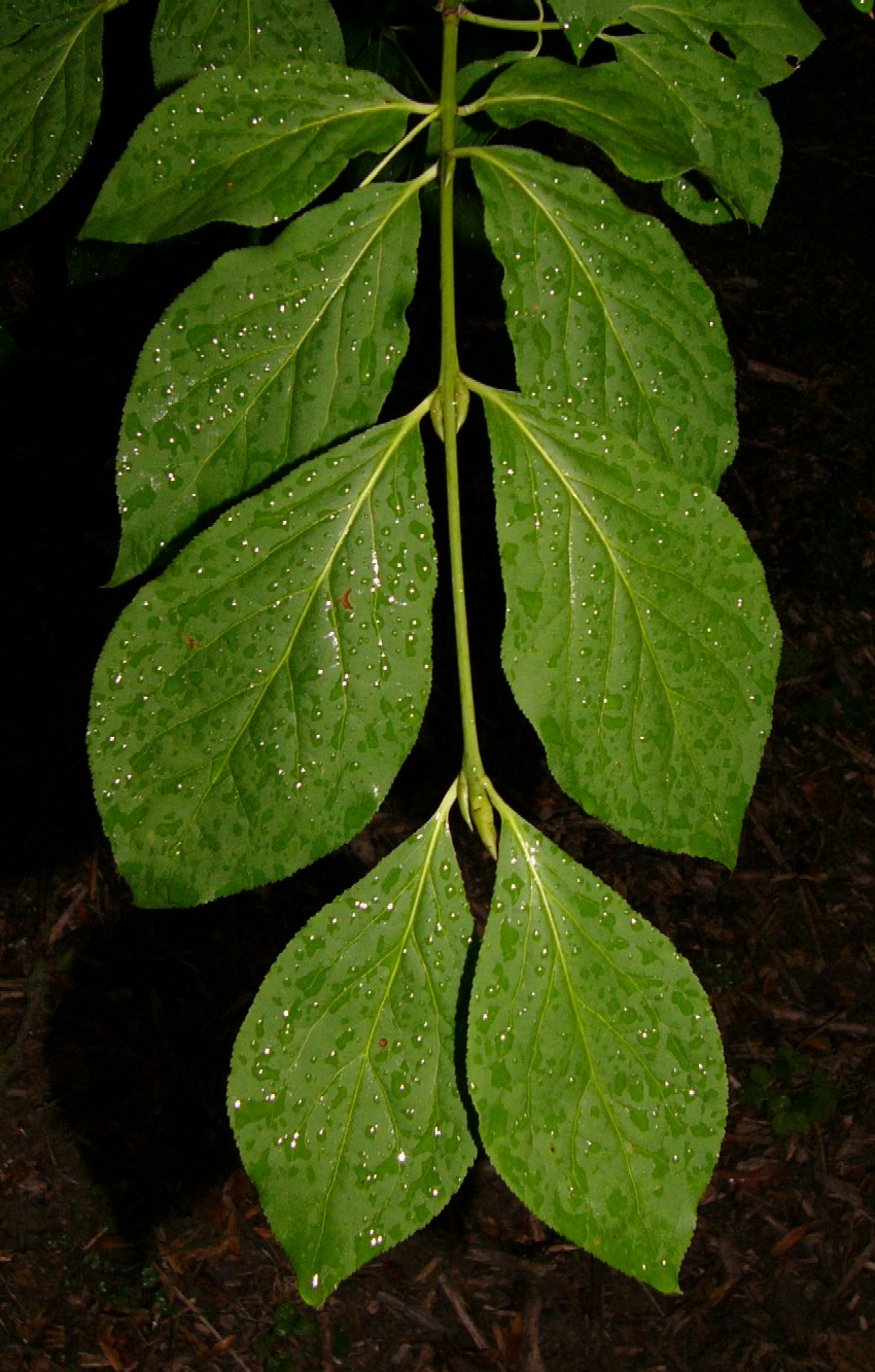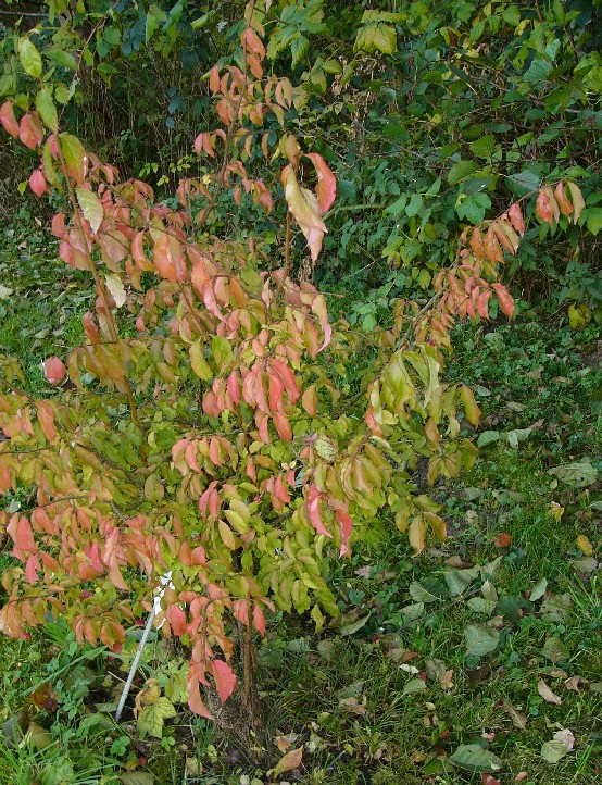 Samen nur unvollständig vom orangeroten Arillus umgeben Blätter 3 - 6 cm, länglich- eiförmig, gesägt gekerbt