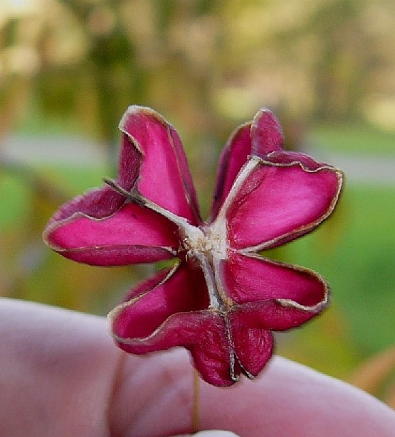 Früchte ähnlich einem Pfaffenhütchen, 5-kantig, schmal geflügelt