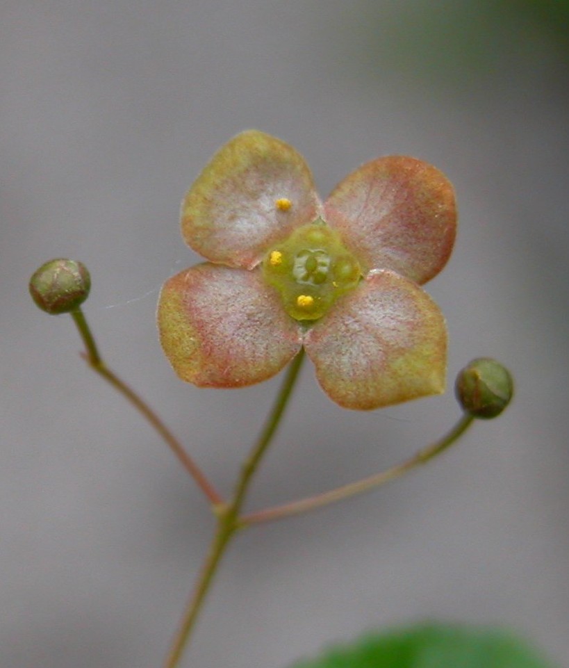 Mit 4 gelblich- grünen, rot punktierten Kronblättern