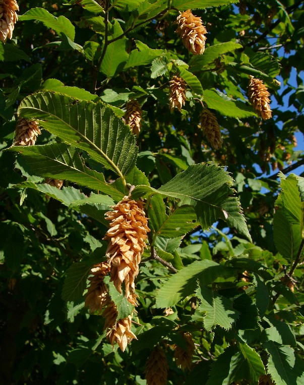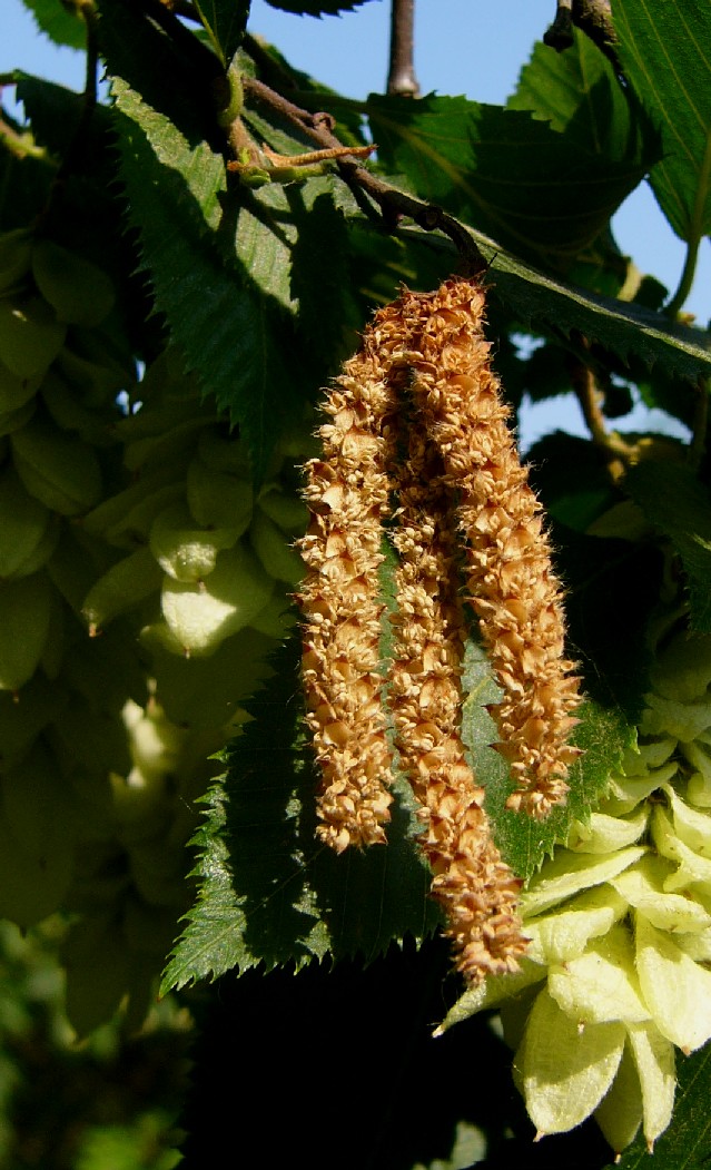 Reife Kätzchen hopfenähnlich, Fruchthülle (= Vorblatt) umschließt den Samen vollständig