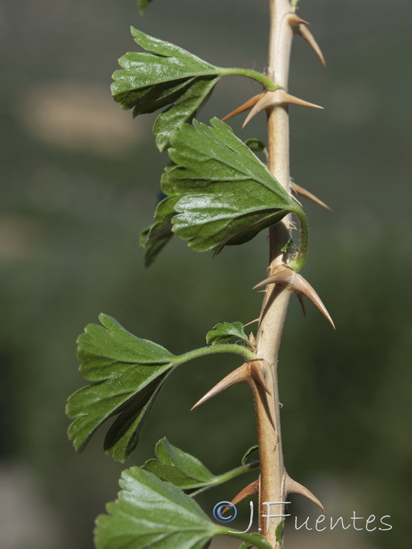 kräftigen, bis 2 cm langen Stacheln Blätter 12 - 18 mm im Durchmesser, Blattstiel 6 - 15 mm lang > 1