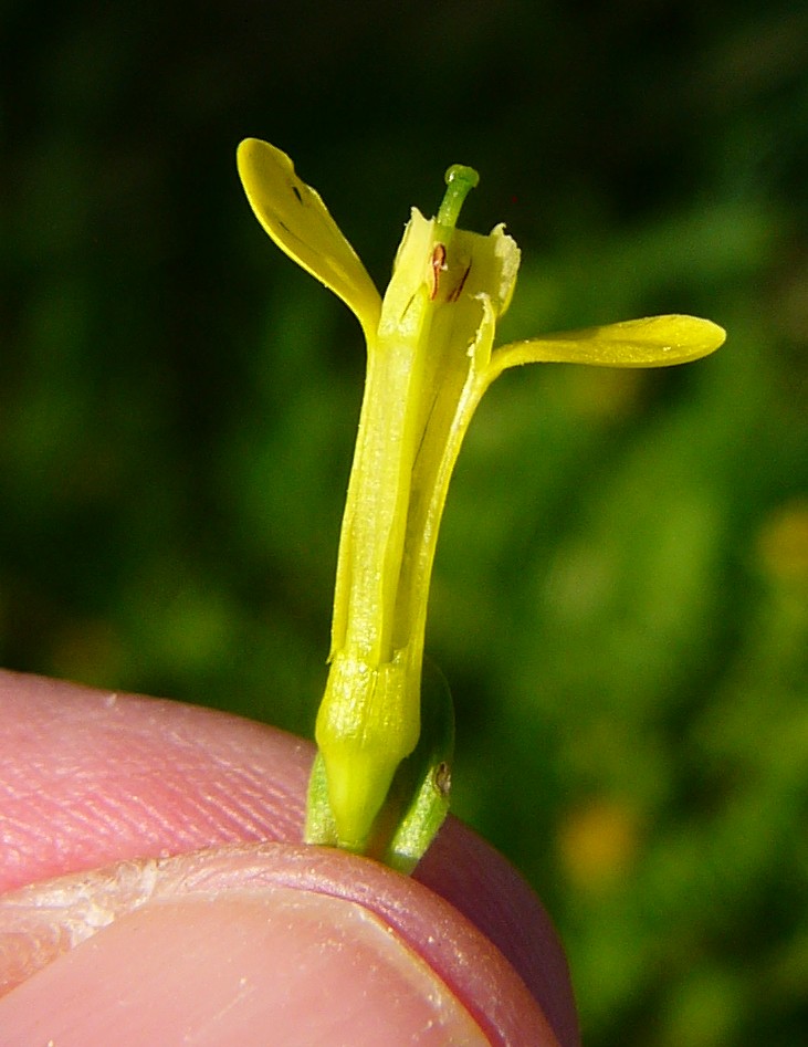 Kronblätter viel kleiner als die Kelchzipfel, anfangs gelb, färben sich dann rötlich
