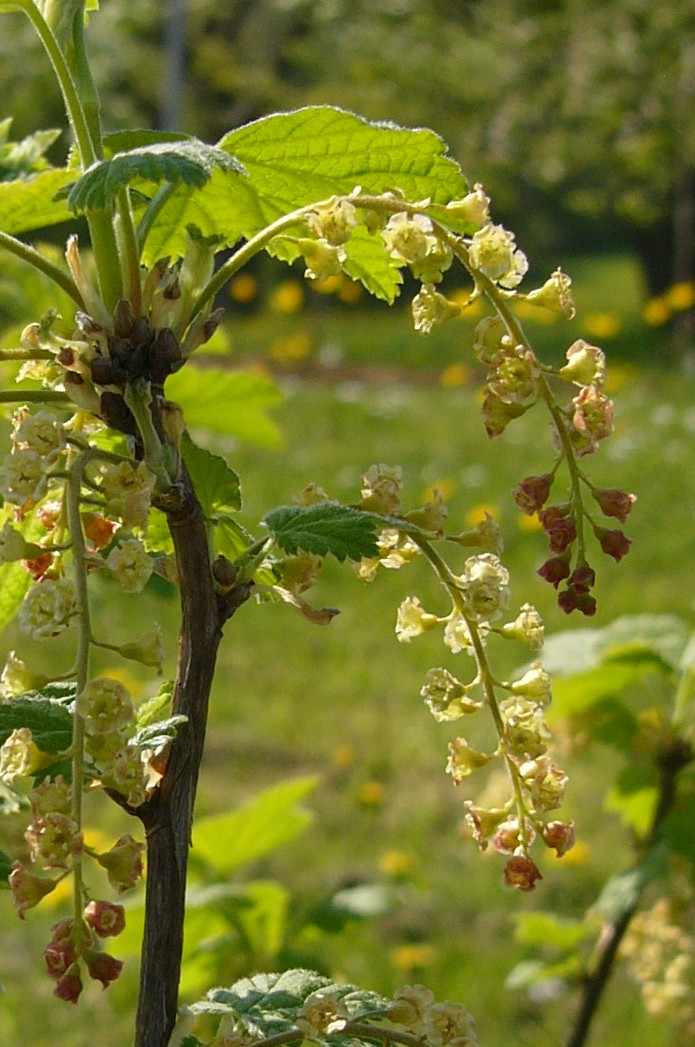 Ribes - Pflanze ohne Stacheln, Blüten grünlich oder rötlich, Kelchröhre schüsselförmig