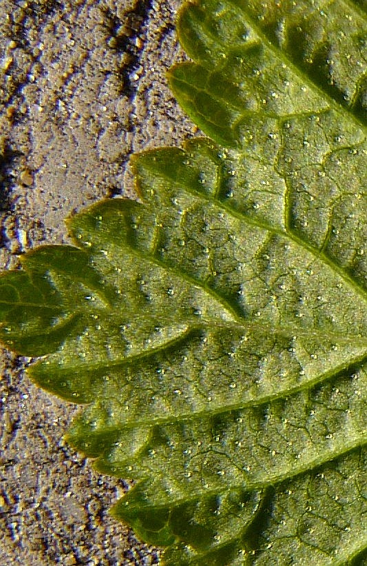 dunkelpurpurn Blätter unterseits mit gelblichen, sitzenden Drüsen > Blätter unterseits mit gelblichen, sitzenden Drüsen