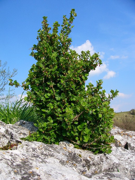 IV - V, Auwälder, Gebüsche (100 - 2000 m) Synonyme: English name: Nom francais: Nome italiano: Verbreitung in Deutschland: Gefährdung in Deutschland: Weltweite Verbreitung: Etymologie: 2n = 16 Ribes uva- crispa ist die Stammform der Garten- Stachelbeere. Die Stachelbeere gibt es in vielen 1000 Sorten, mit gelben, roten grünen und weißen Früchten, die alle +/- sauer schmecken