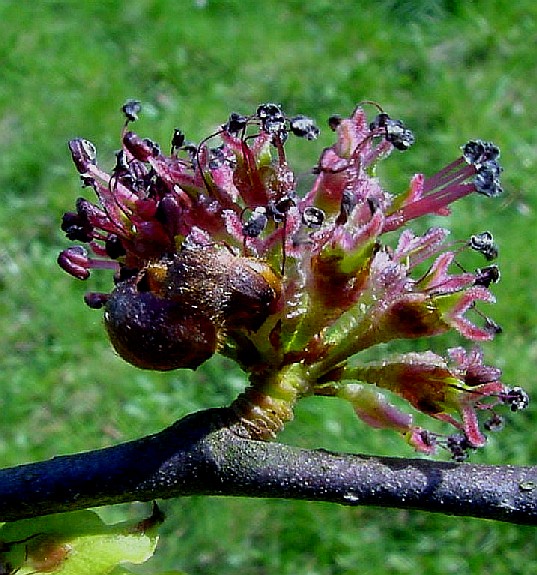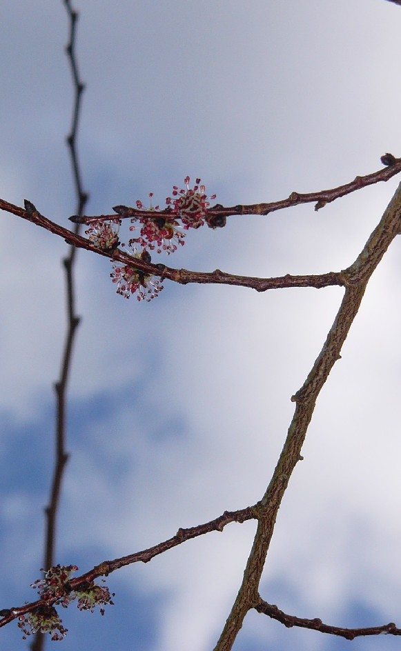Blüten vor der Laubentfaltung im März/April aufblühend, büschelig gehäuft