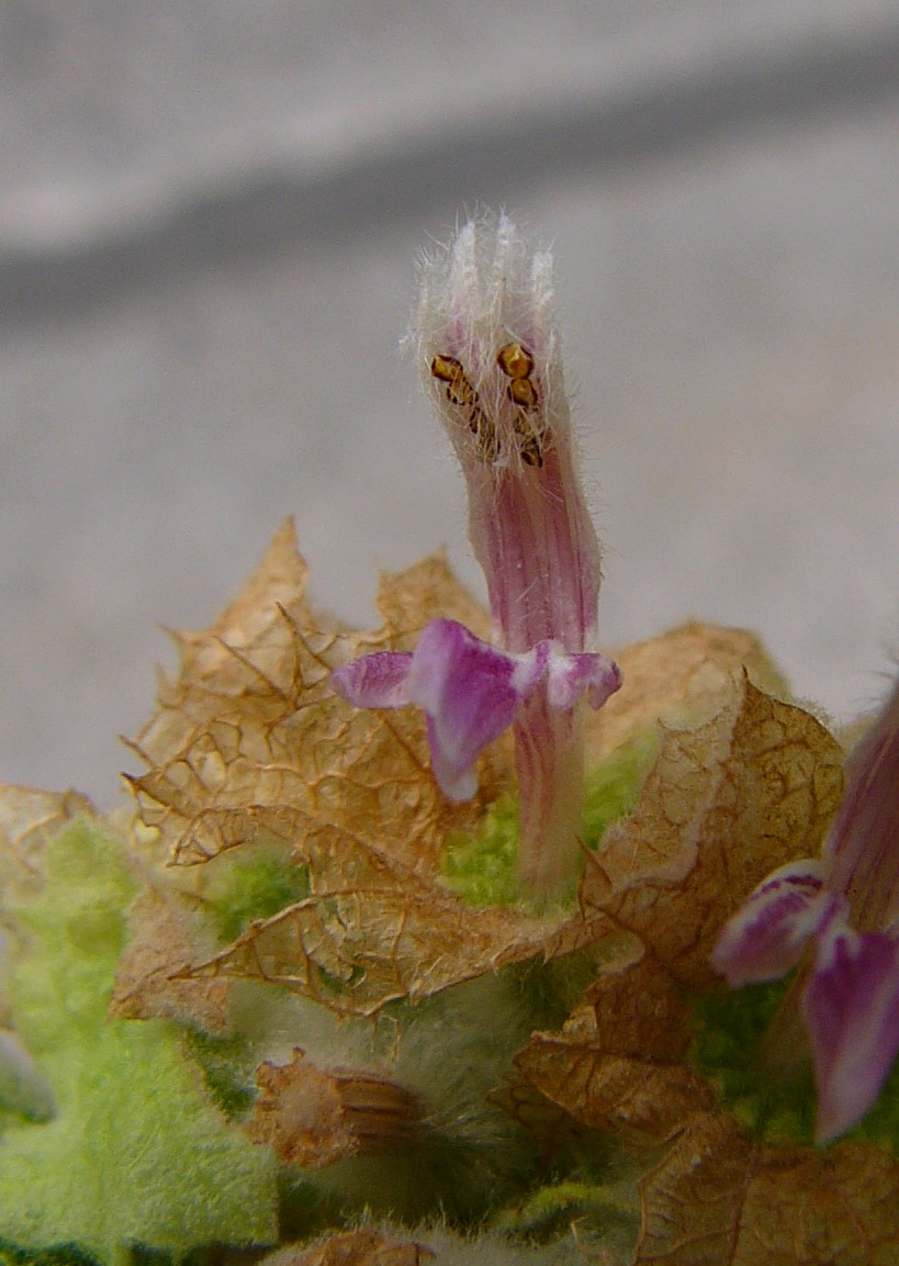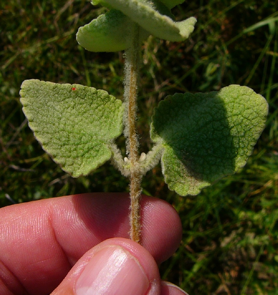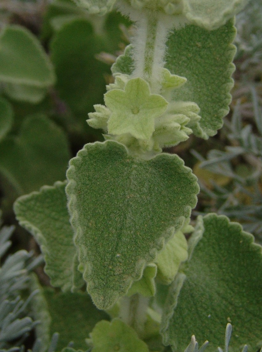 Kelch wird beim Trocknen braun, Adern und Spitzchen werden deutlicher Stängel dicht weißwollig Blätter 40 - 50 mm lang, eiförmig, gekerbt, jung dicht weißwollig, später grünlich Blätter unterseits weißwollig