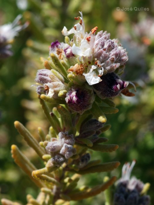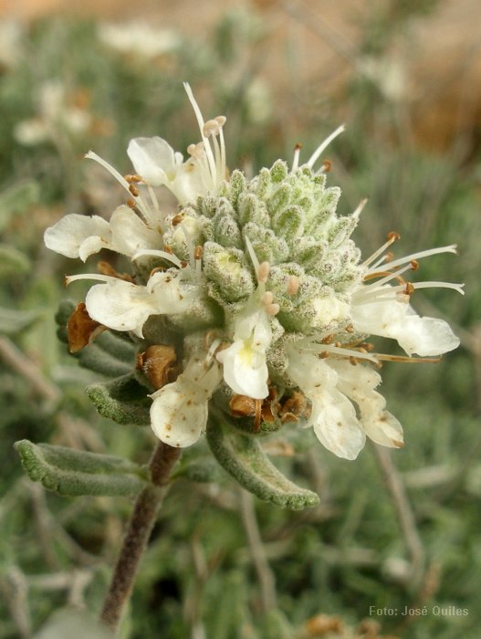 Blüten cremeweiß, Reste der Oberlippe meist aufrecht, kahl, Mittellappen der Unterlippe 1,3 mm lang, 1 mm breit, Seitenlappen der Unterlippe, klein, schlank