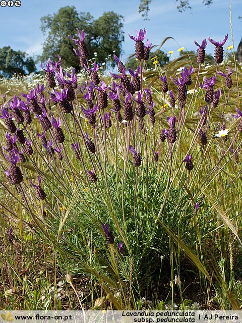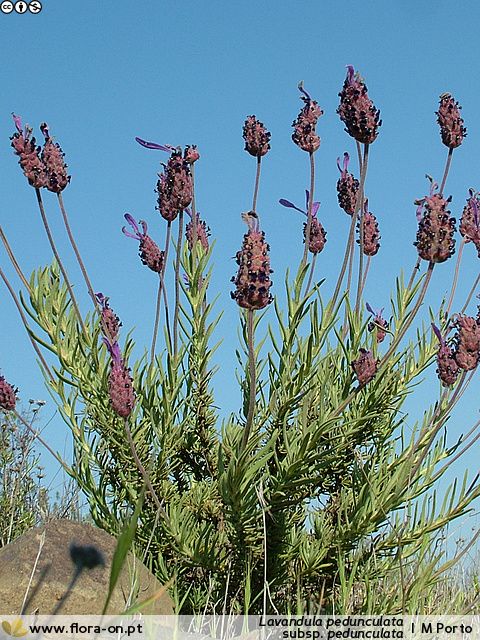 in: Wird häufig als Zierpflanze kultiviert! Die in der Flora Europaea ausgewiesenen Unterarten Lavandula stoechas ssp. sampaiana Rozeira syn. Lavandula pedunculata ssp. sampaioana (Rozeira) J. do Amaral Franco und Lavandula stoechas ssp lusitanica (Chaytor) Rozeira syn. Lavandula pedunculata ssp. lusitanica (Chaytor) J. do Amaral Franco werden in der Flora Iberica als Synonyme zu Lavandula peduculata angesehen.