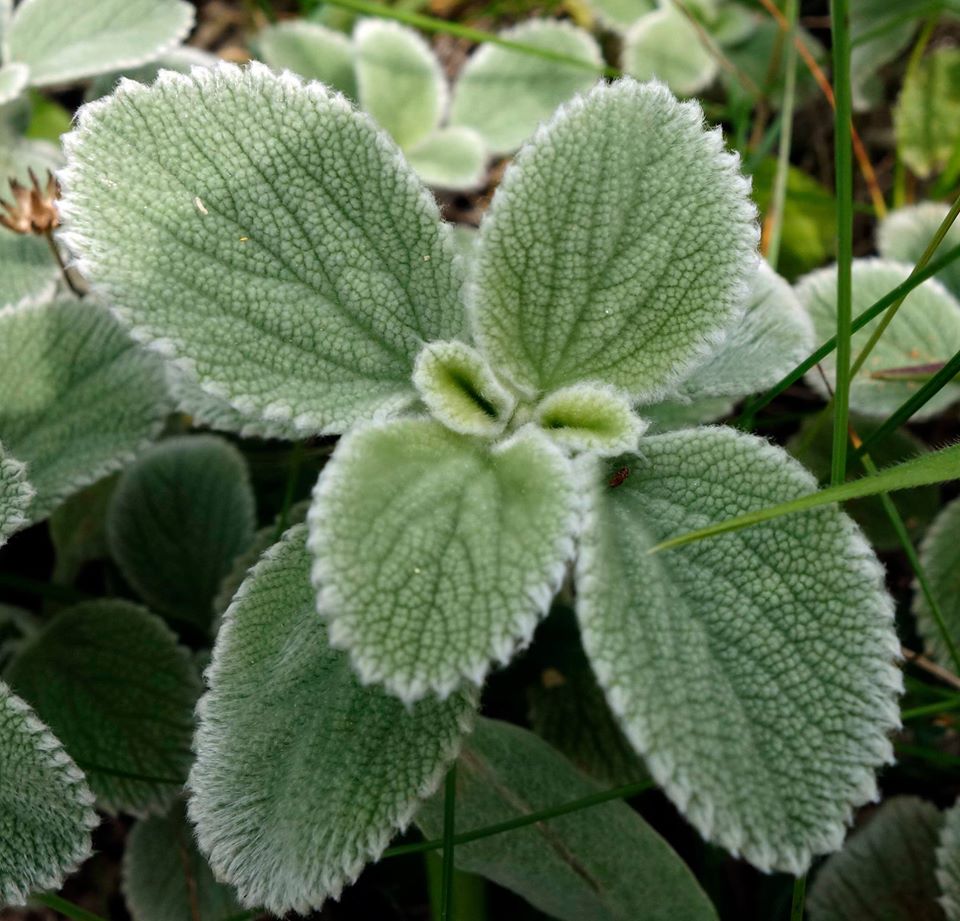 Blätter breit elliptisch, am Grund keilig, wollig behaart