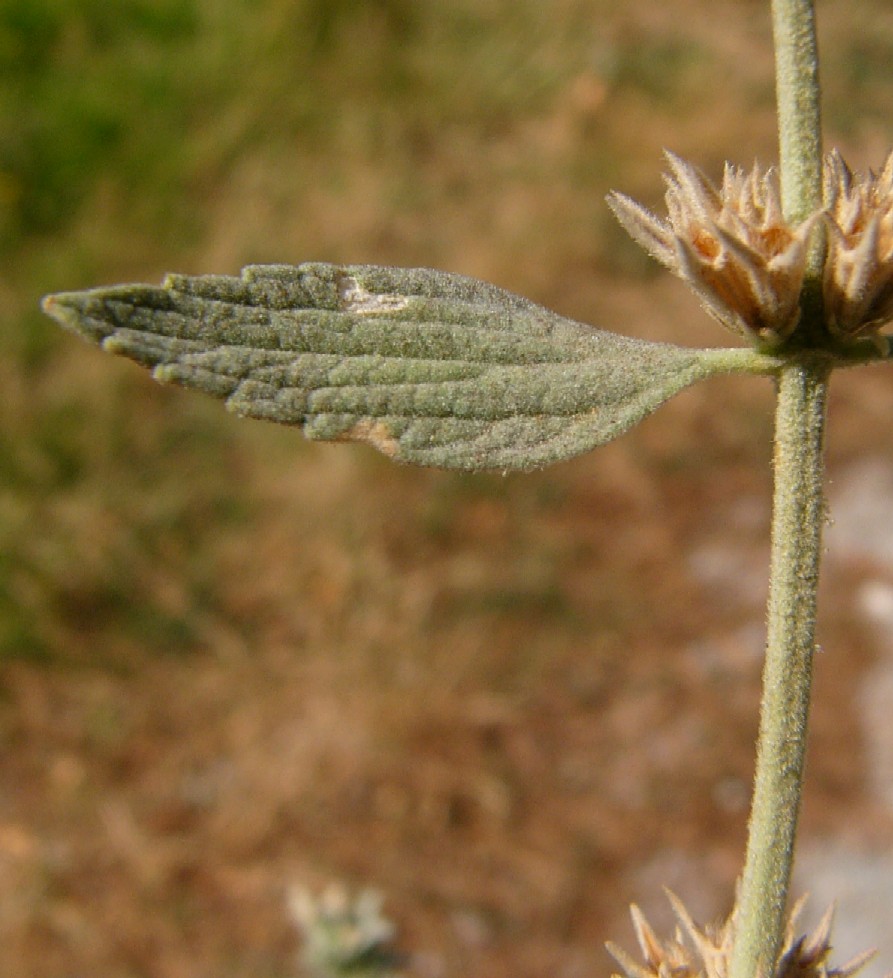 Blätter elliptisch- lanzettlich, am Grund keilig, graufilzig behaart