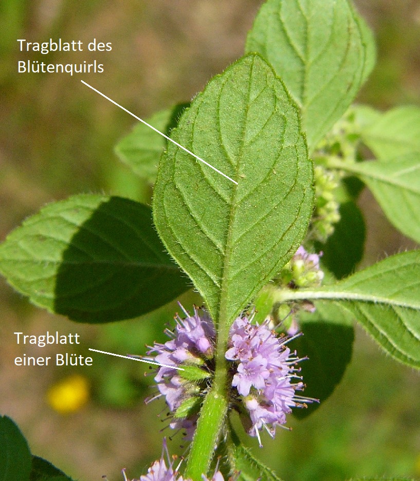 4 Tragblätter der Blütenquirle viel länger als der Blütenquirl, lang gestielt, meist abstehend