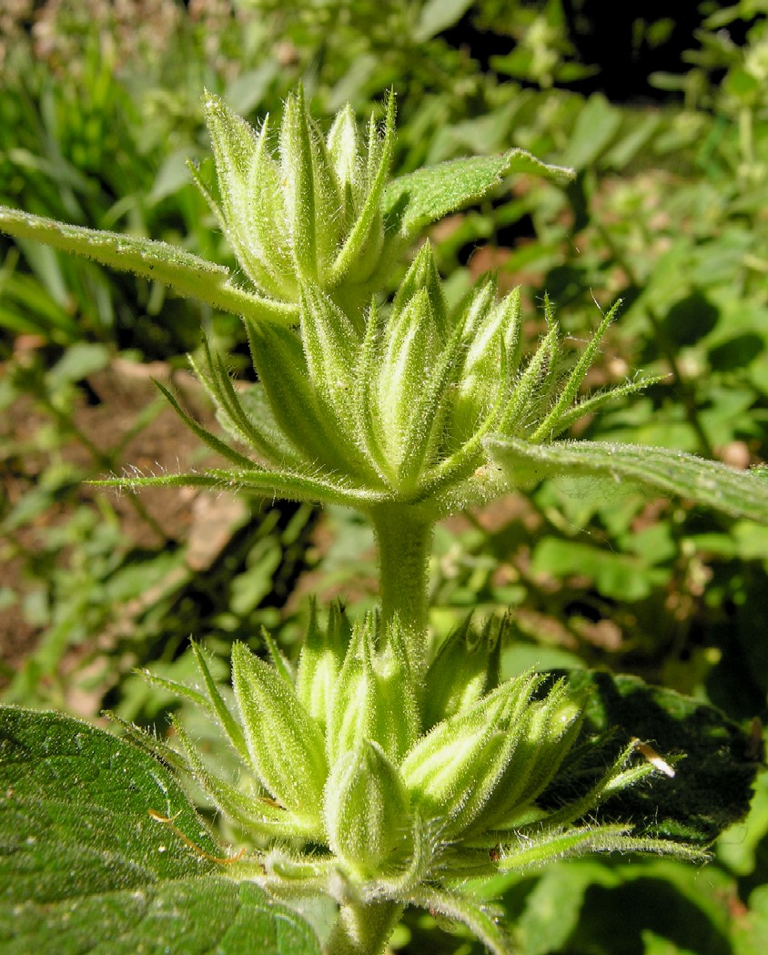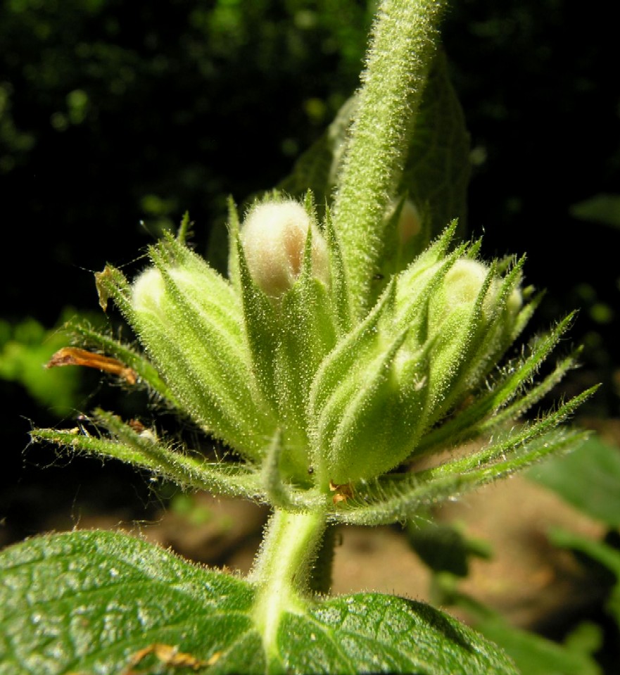 1 Stängel, Tragblätter der Blüten und Kelch drüsig