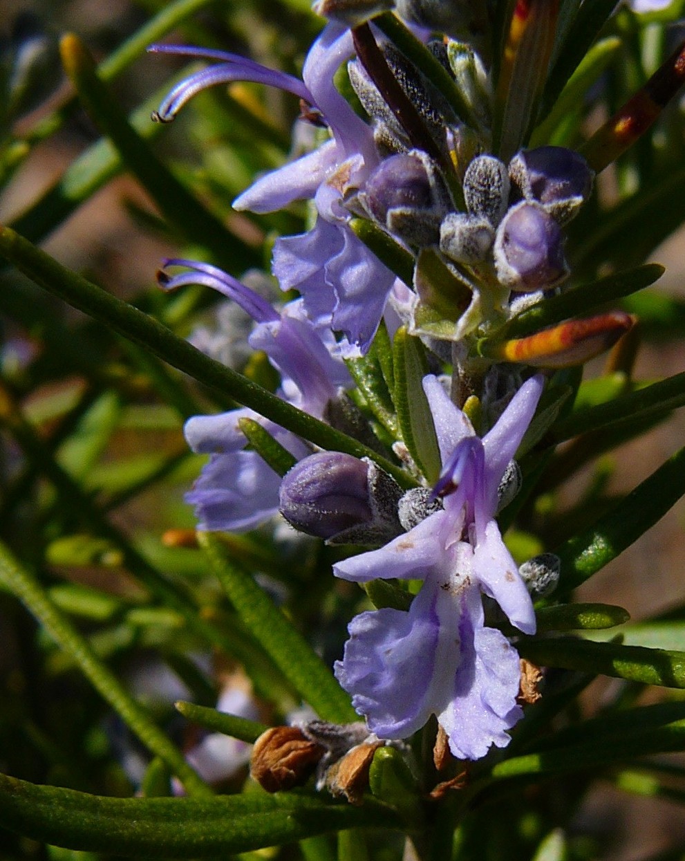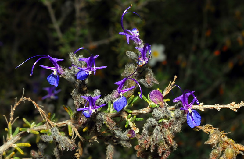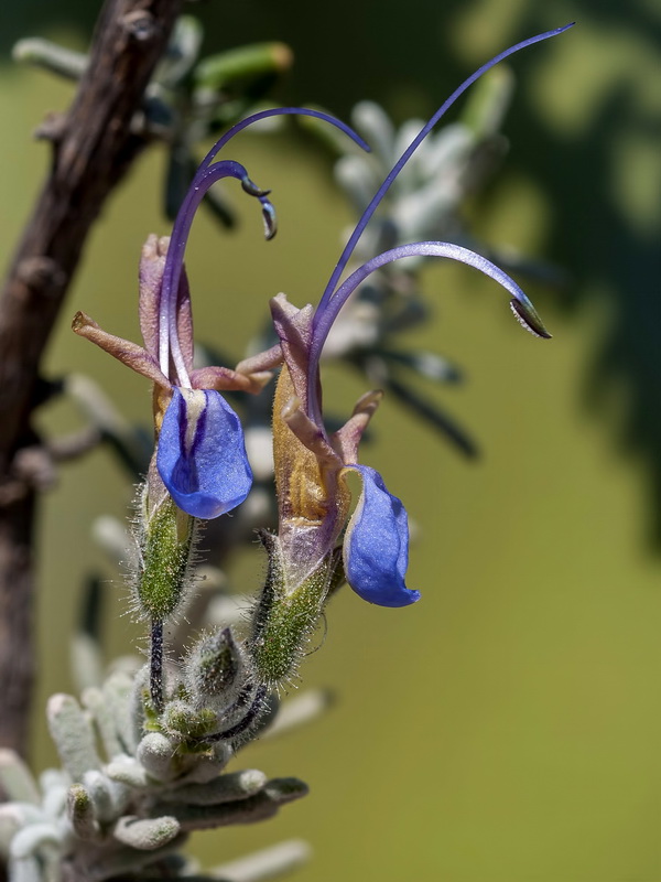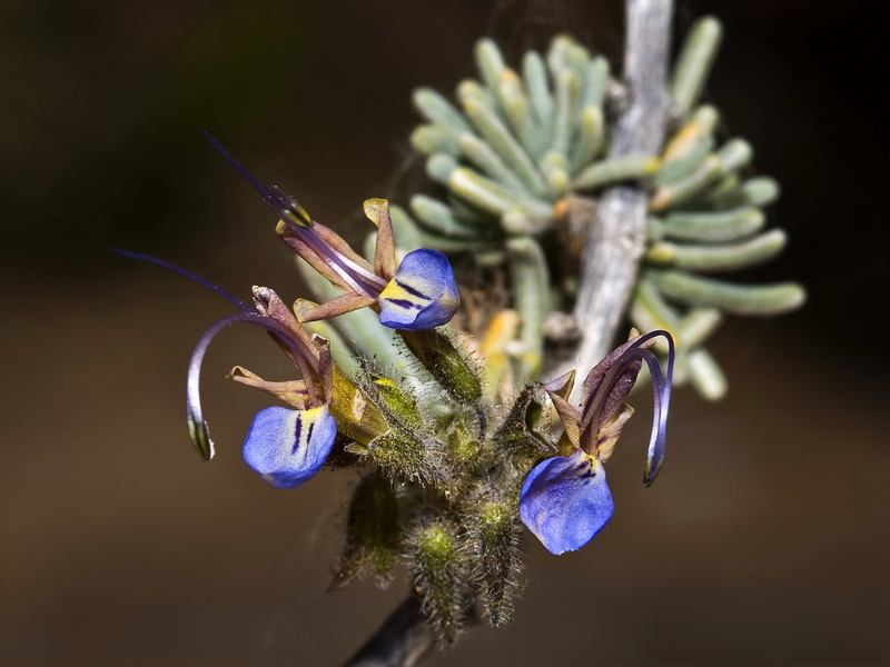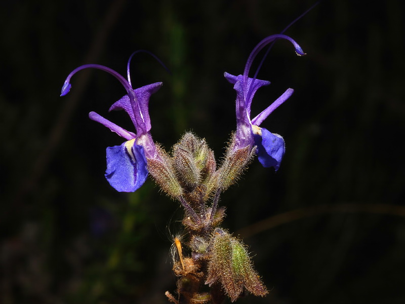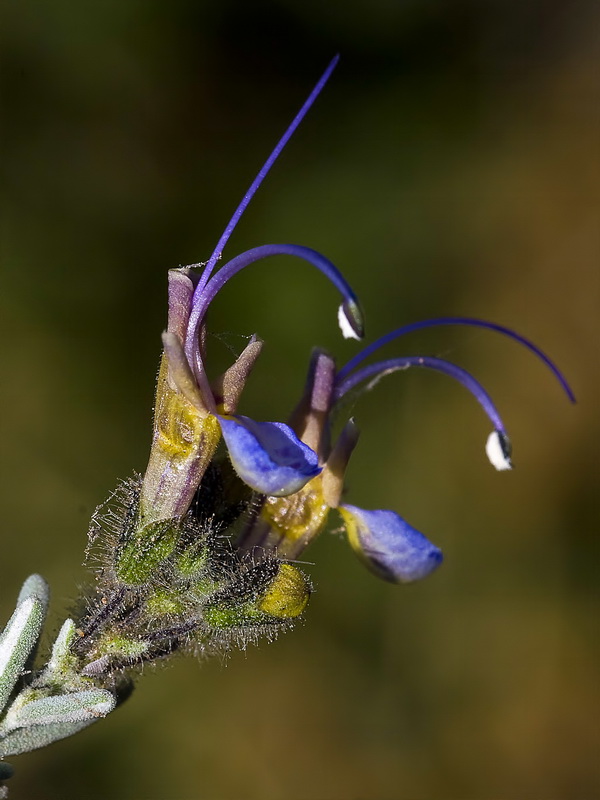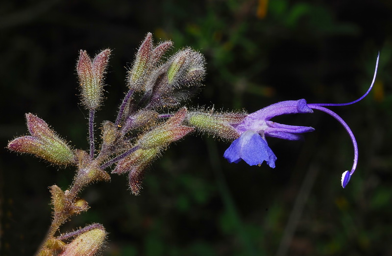 Blüten 8 - 13 mm groß, blauviolett Kelch 5 - 7 mm lang, mit 13 - 14 Nerven, glockig, 2- lippig, mit langen Drüsenhaaren