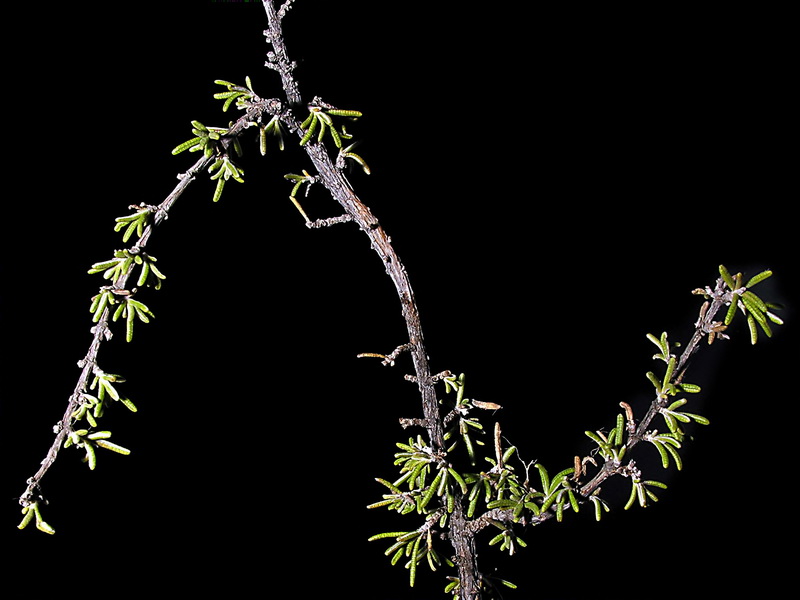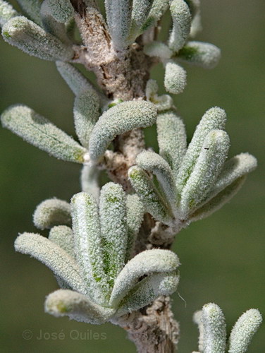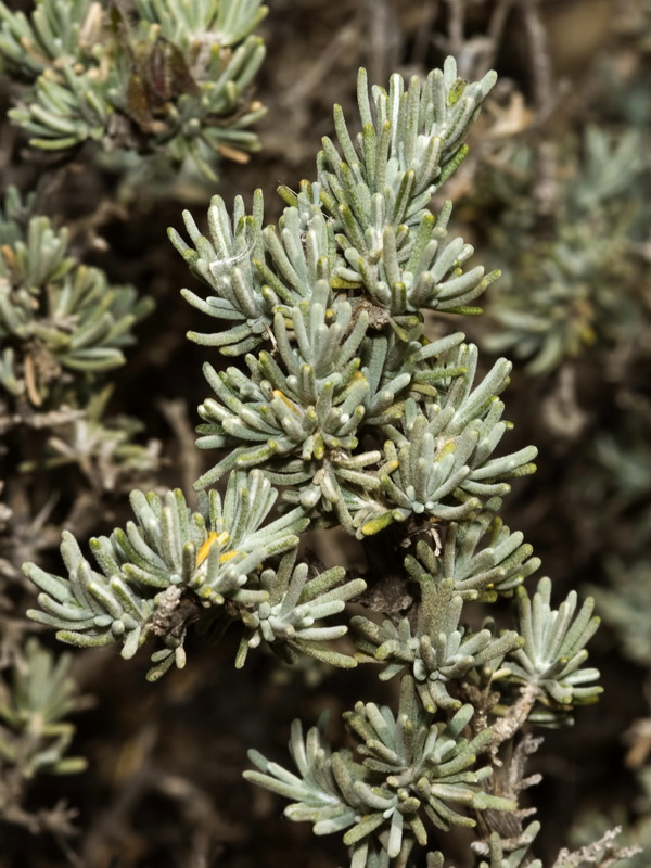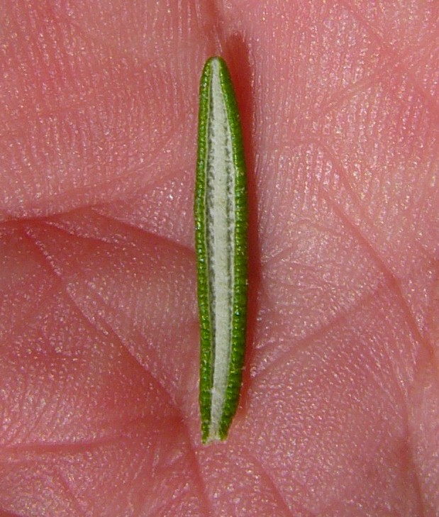 Blätter nur jung filzig, später +/- kahl, immergrün, 7 - 20 mm lang, 1,5 mm breit, linealisch, ganzrandig, am Rand umgebogen, oberseits unterseits durch Sternhaare weiß