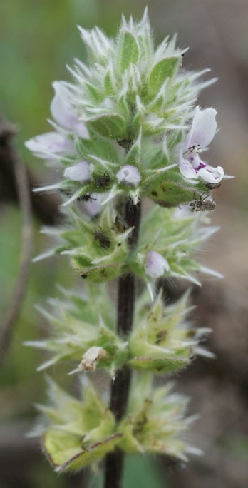 4 Blüten weiß, Unterlippe mit deutlichen roten Markierungen, Tragblätter der Blütenquirle rundlich
