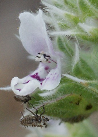 Blüten behaart, Oberlippe 2 mm, ausgerandet, Unterlippe 2 mm,