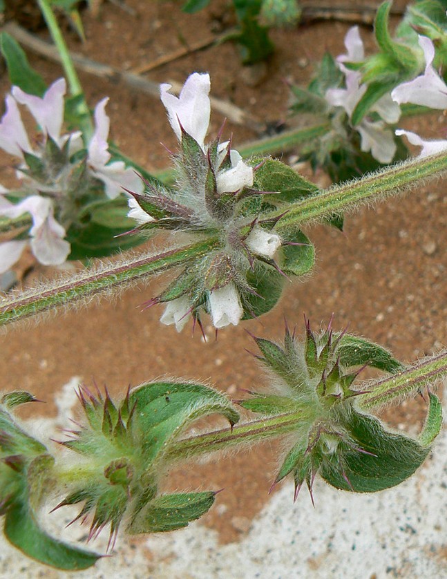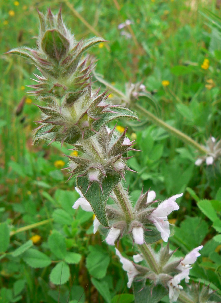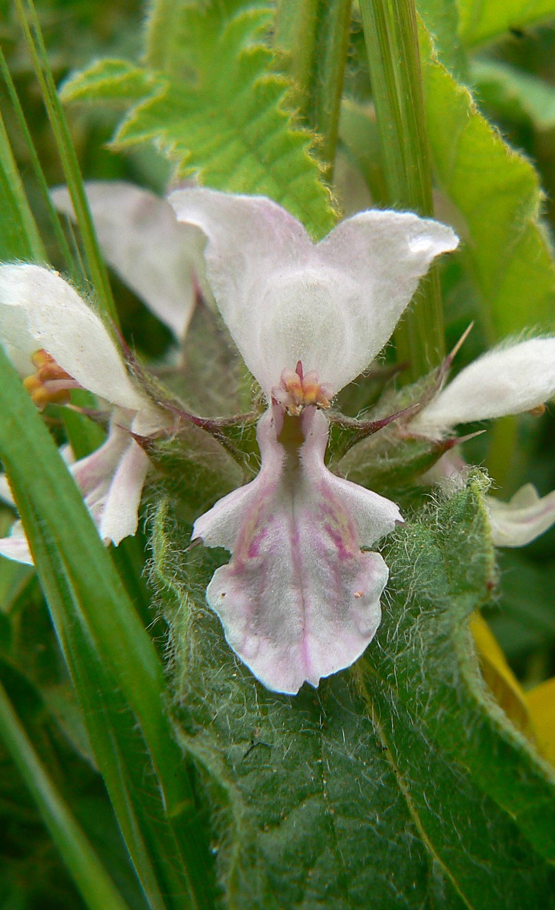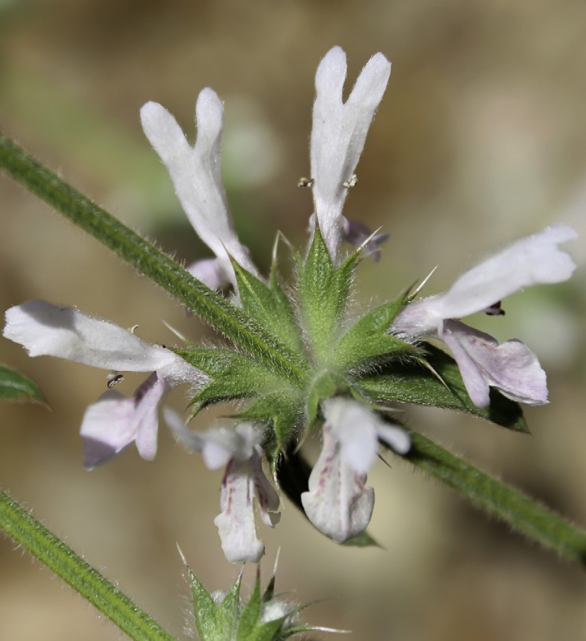 Stachys- Kräuter oder Halbsträucher, Blüten weißlich oder gelblich, Stängel dicht langhaarig