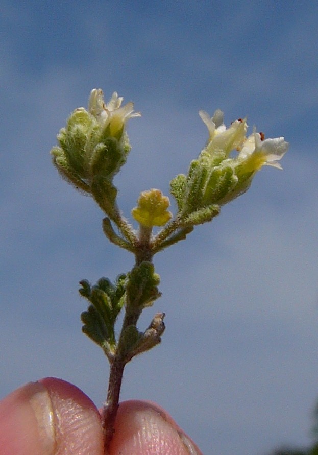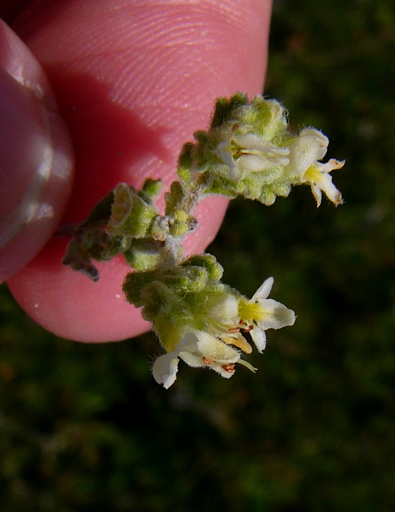 Kelch glockig, 2 - 5 mm, dicht weichhaarig Junge Zweige und Blätter mit angedrückten Haaren
