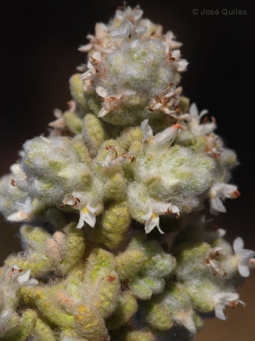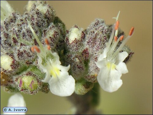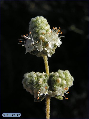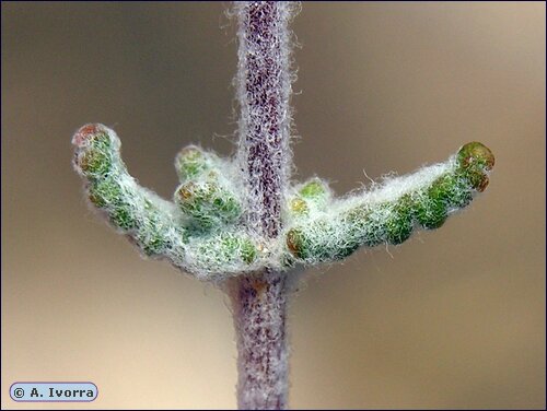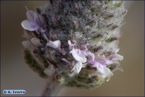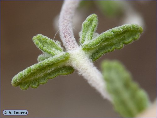 Spanische Teucrium-Arten - Blüten in mehreren Köpfchen, Blätter gezähnt, wollig- filzig behaart