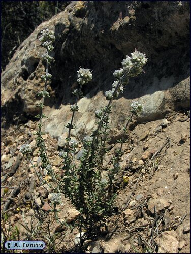 1 Endemit der Cabo de Gata, Almeria, Stängel mit mehr als 5 sitzenden, ca. 1 cm großen Köpfchen
