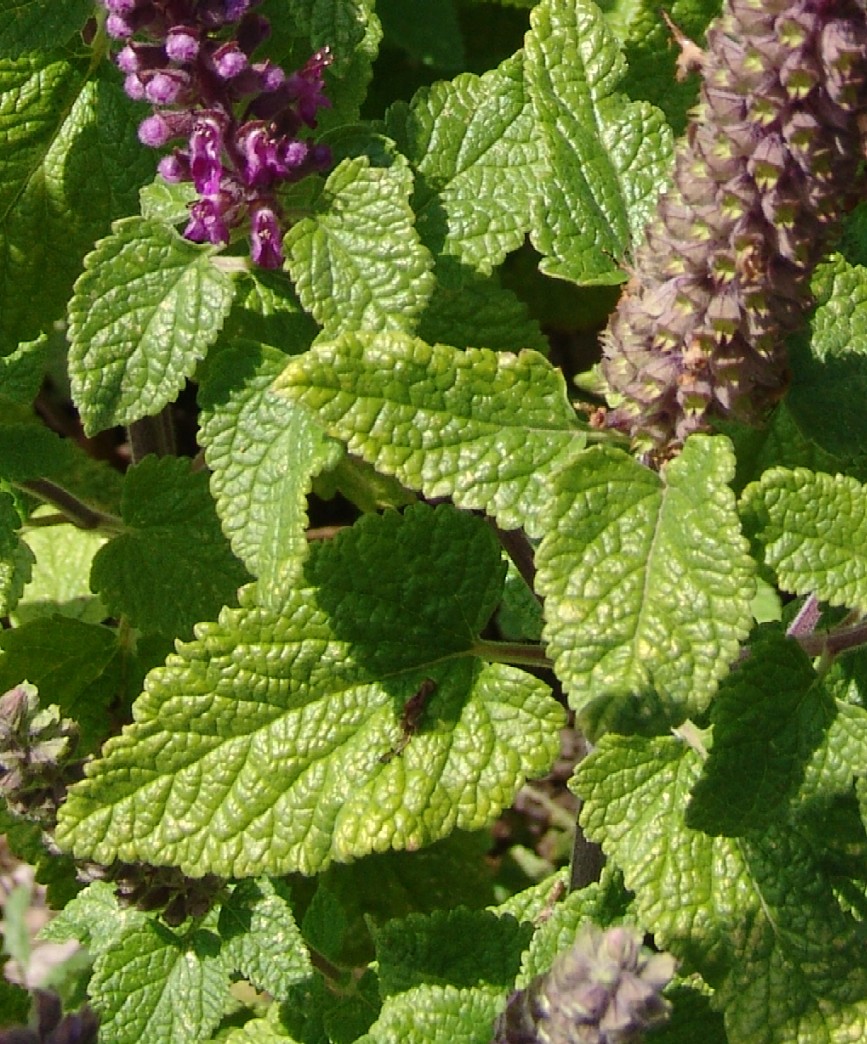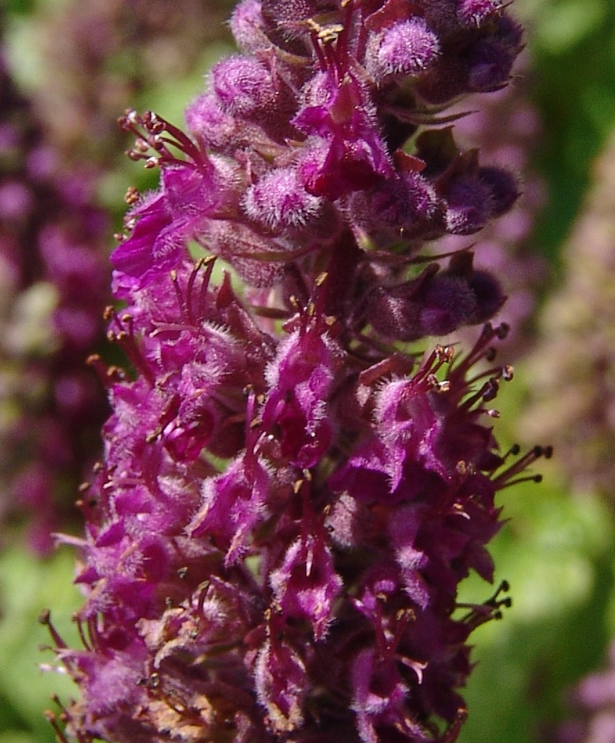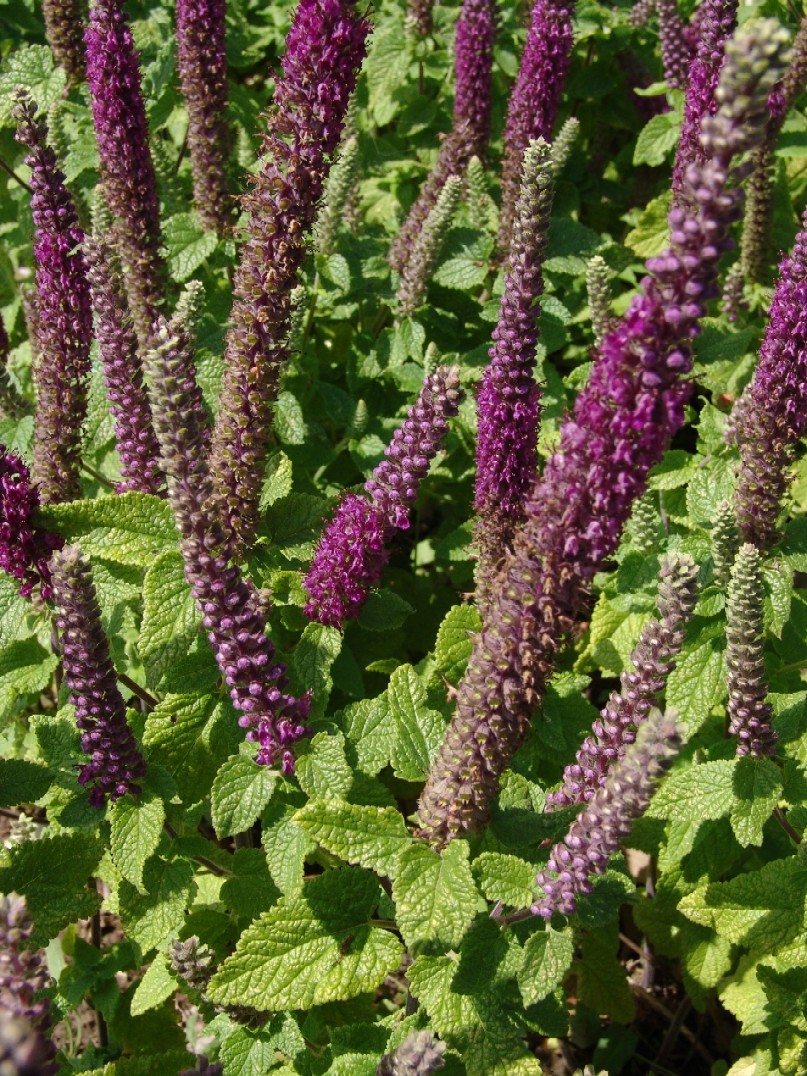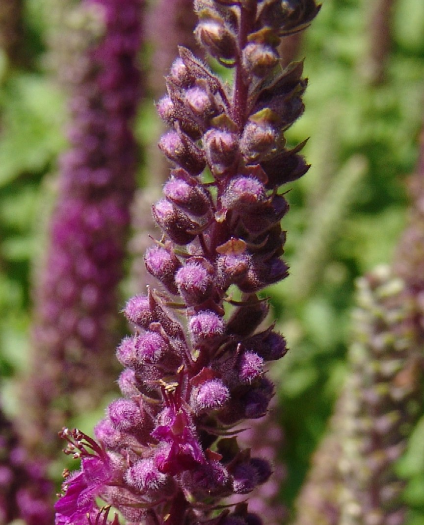 Teucrium - Blüten rot, in dichten Ähren, Blätter groß, gezähnt, angedrückt behaart