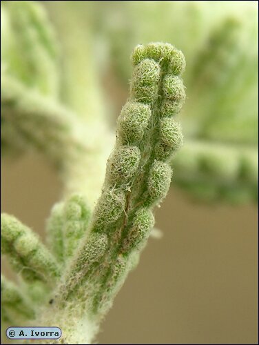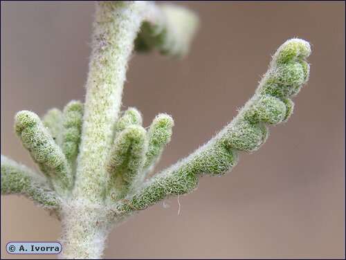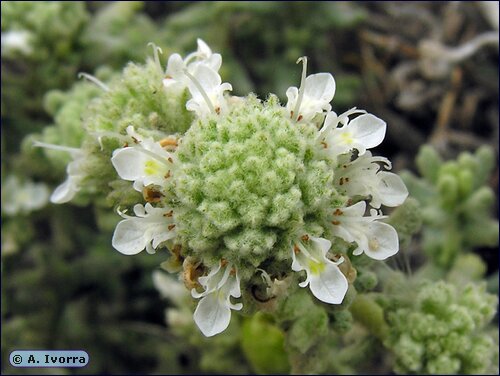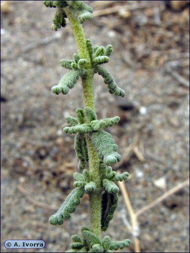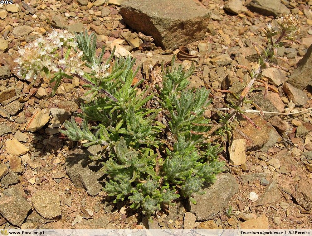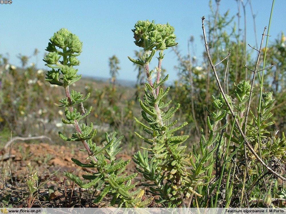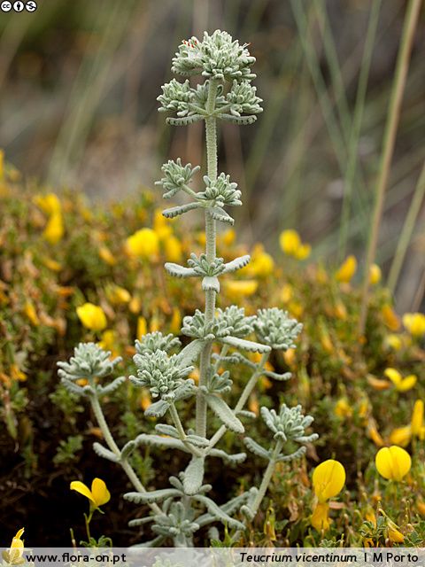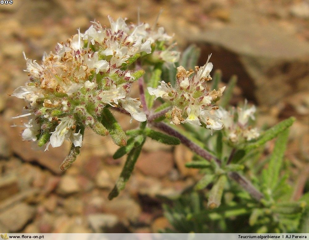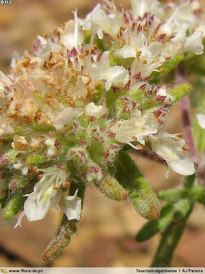 Portugiesische Teucrium- Arten - Blüten in Köpfchen oder dichten Ähren, Blätter gezähnt, wollig- filzig behaart