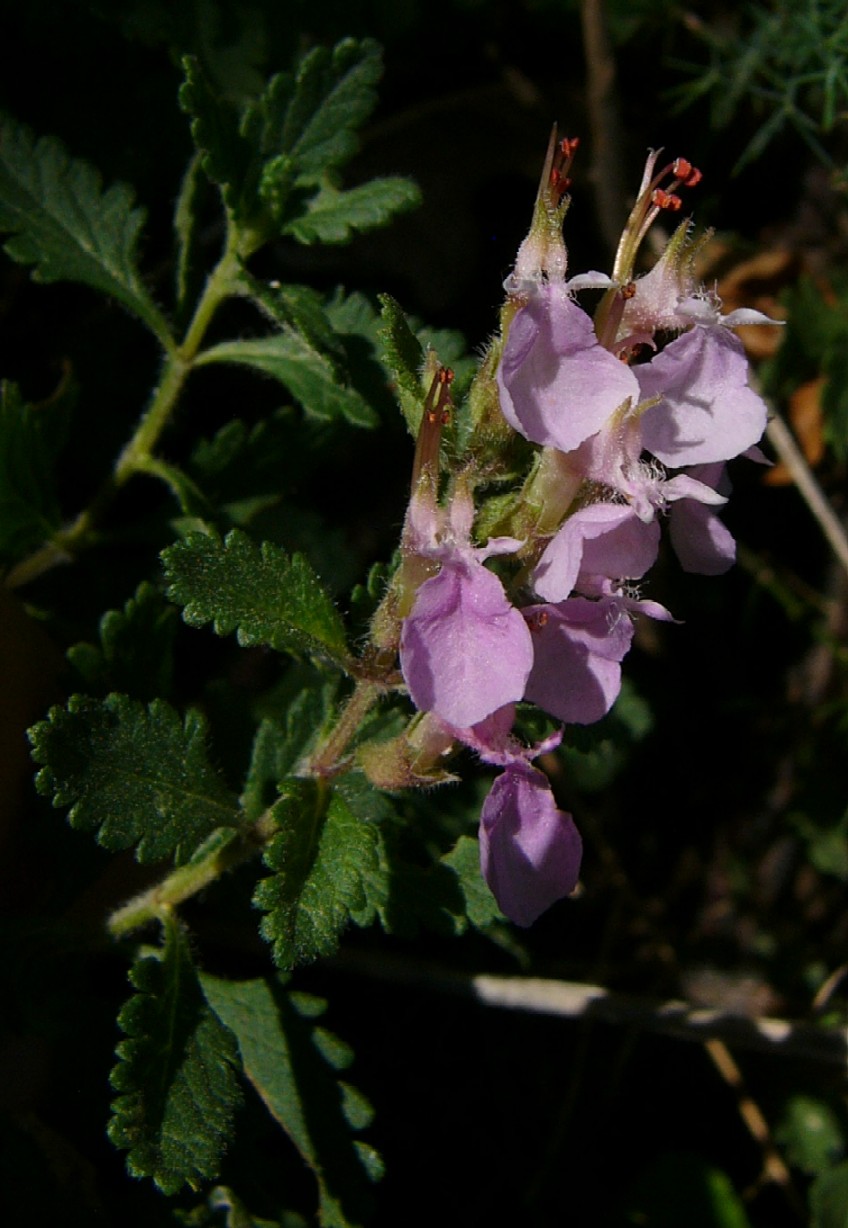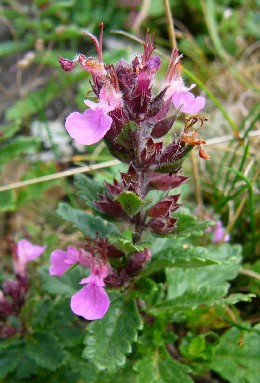 Blüten rot, Reste der Oberlippe aufrecht, spitz