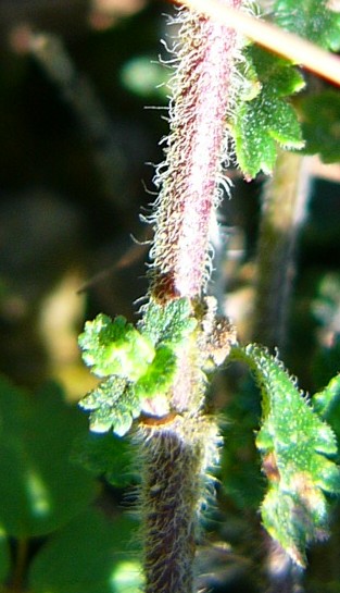 Stängel stielrund, zottig weich behaart, im unteren Teil nicht verholzt