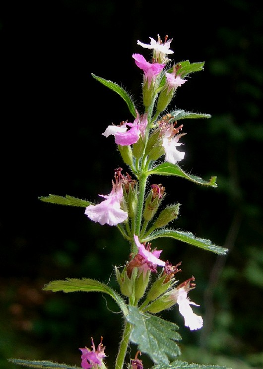 locker, Blüten rot oder rosa, Blätter gekerbt, eiförmig