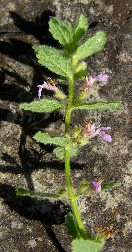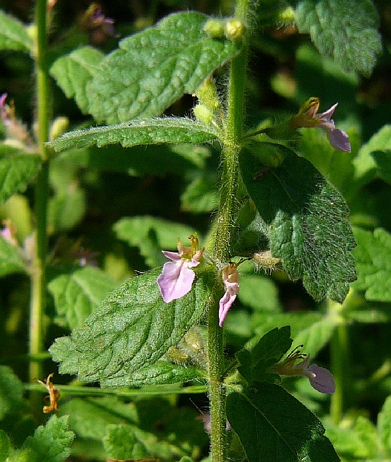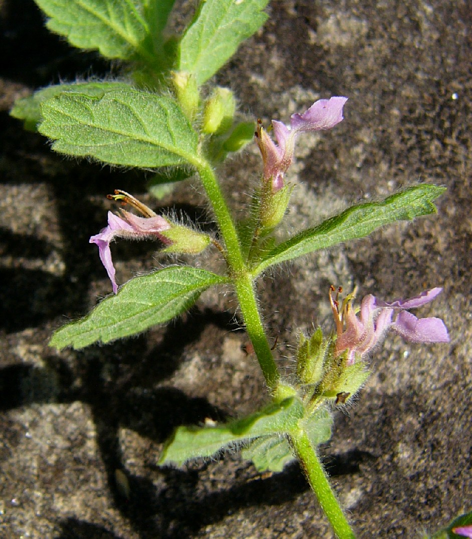 Kelch nicht oder undeutlich 2- lippig, Stängel behaart, höchstens am Grund