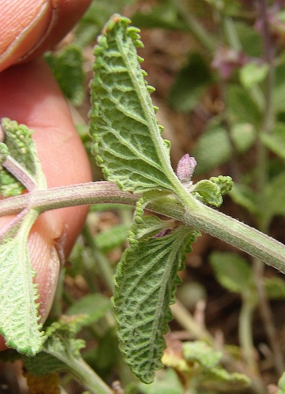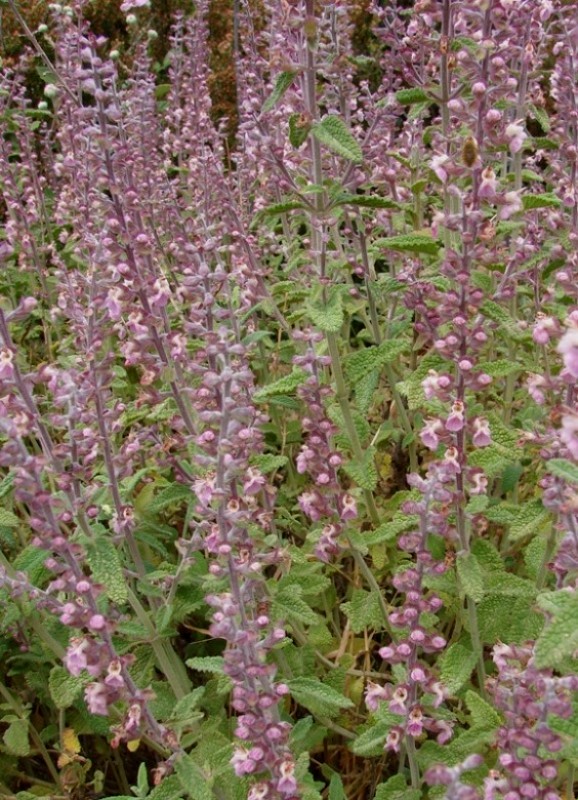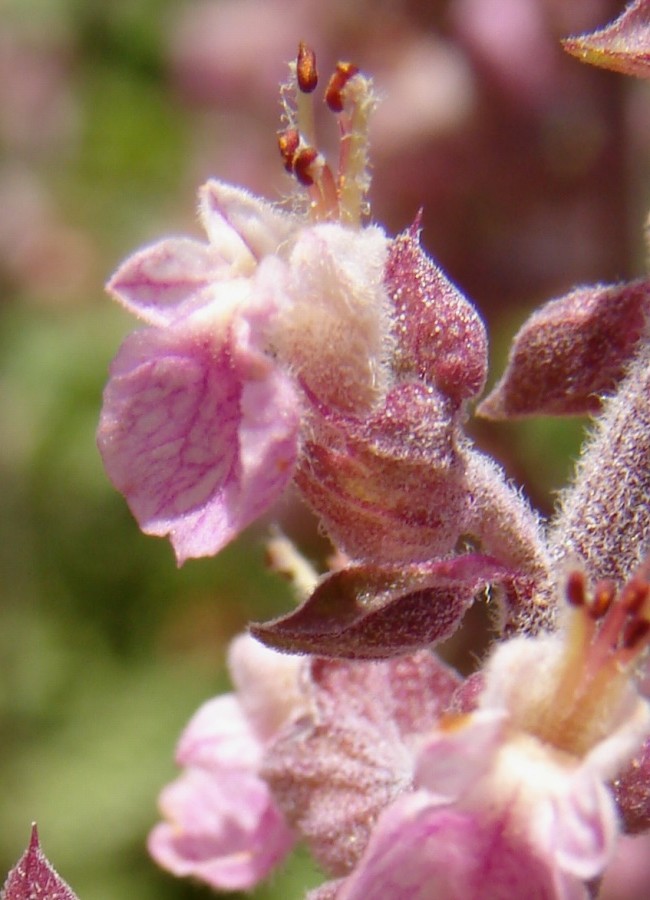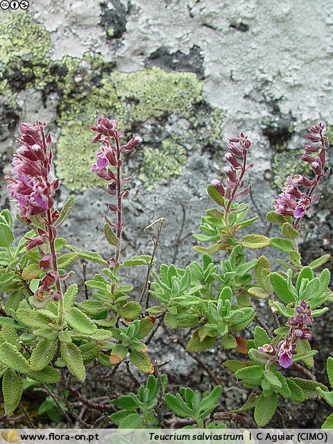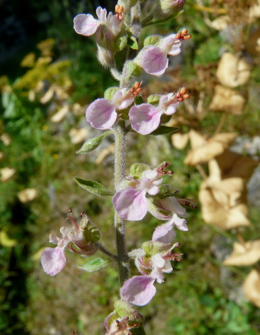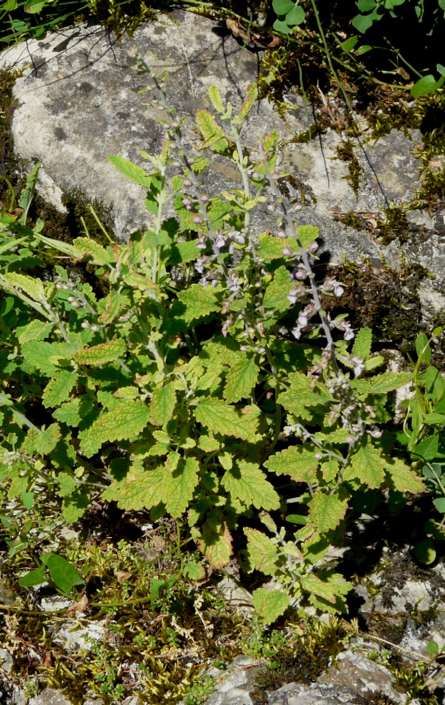 Teucrium - Blütenstand locker, Blüten rot oder rosa, Blätter gekerbt, eiförmig, runzlig, Kelch 2- lippig