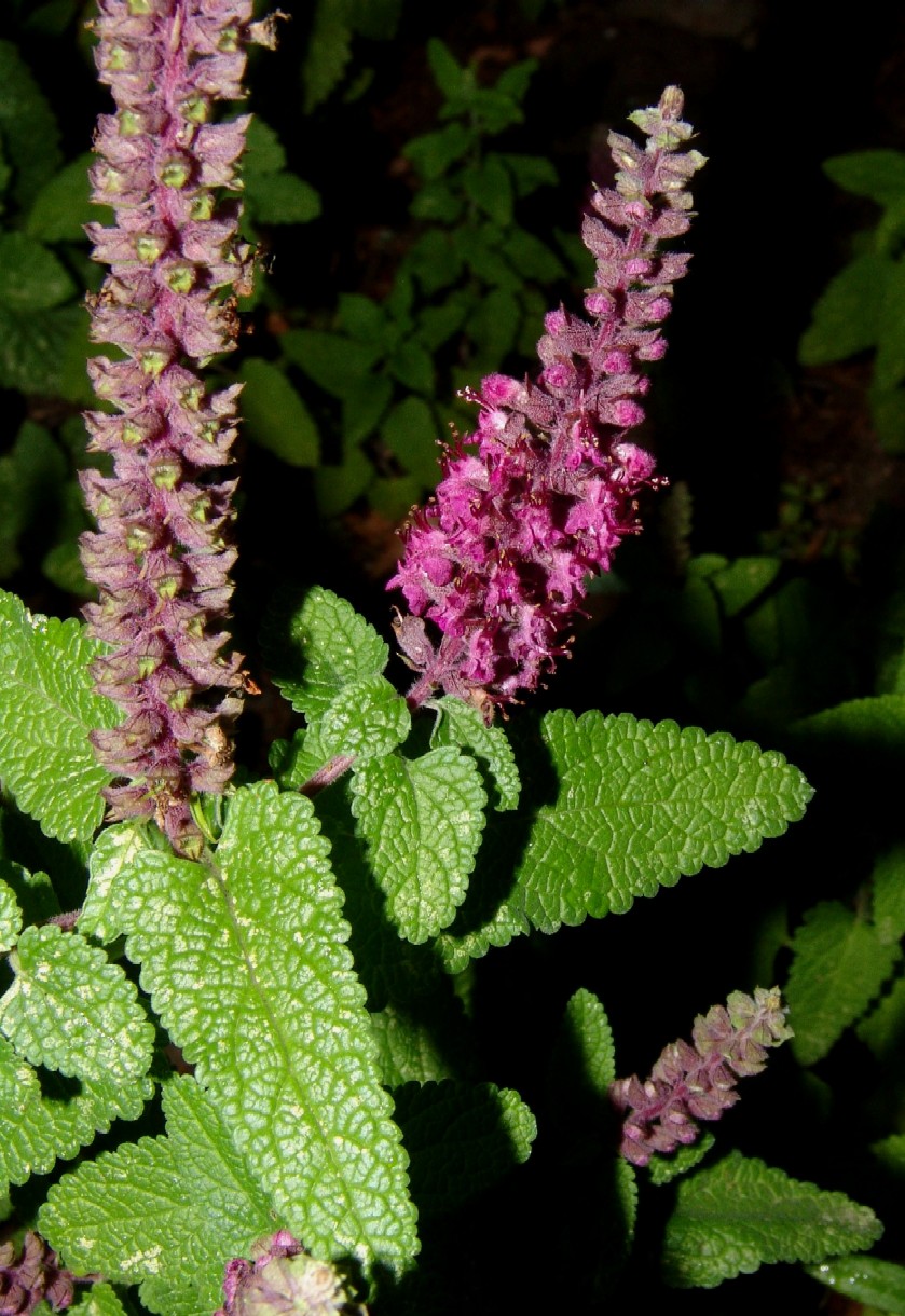 Zierpflanze Blütenstände ährig, Blüten rot, Blätter groß > Teucrium hyrcanicum