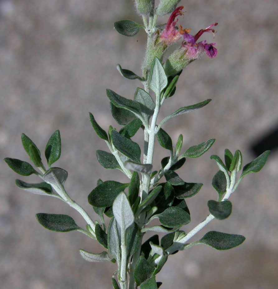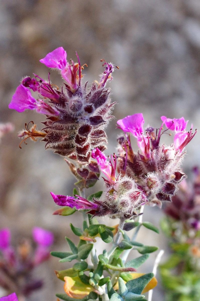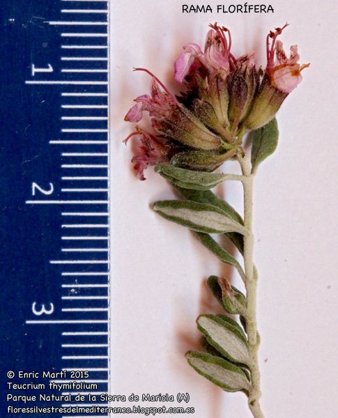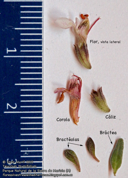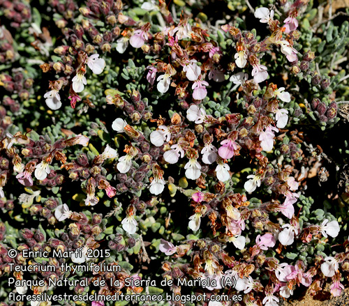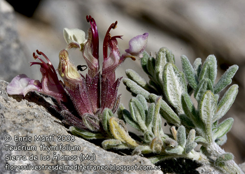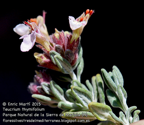 Teucrium: Unterlippe weiß, rot oder rosa, Blätter ganzrandig, eilänglich, 4 - 9 mm lang, 3 - 4 mm breit