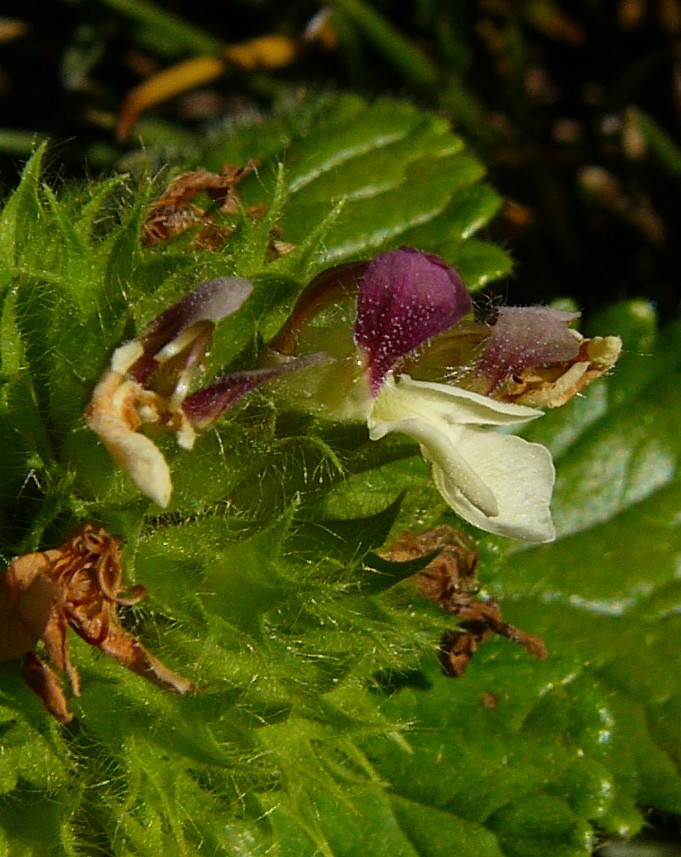 Reste der Oberlippe nach oben stehend, je nach Unterart grünlich oder violett