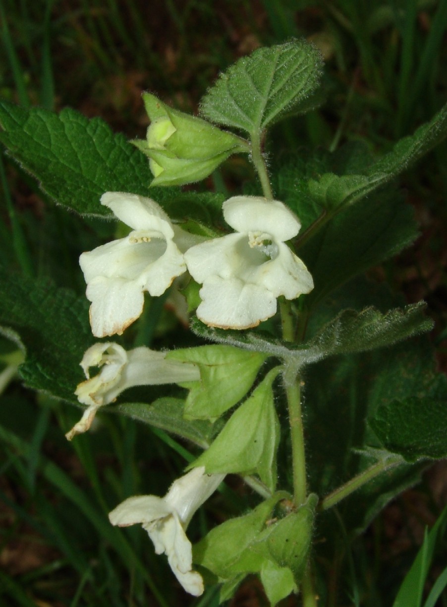 2 Mittellappen der Unterlippe weiß, größte Blätter 6 - 15 cm lang, mit 20 - 30 Zähnen auf jeder Seite, Stängel dicht mit langen gestielten Drüsen bedeckt