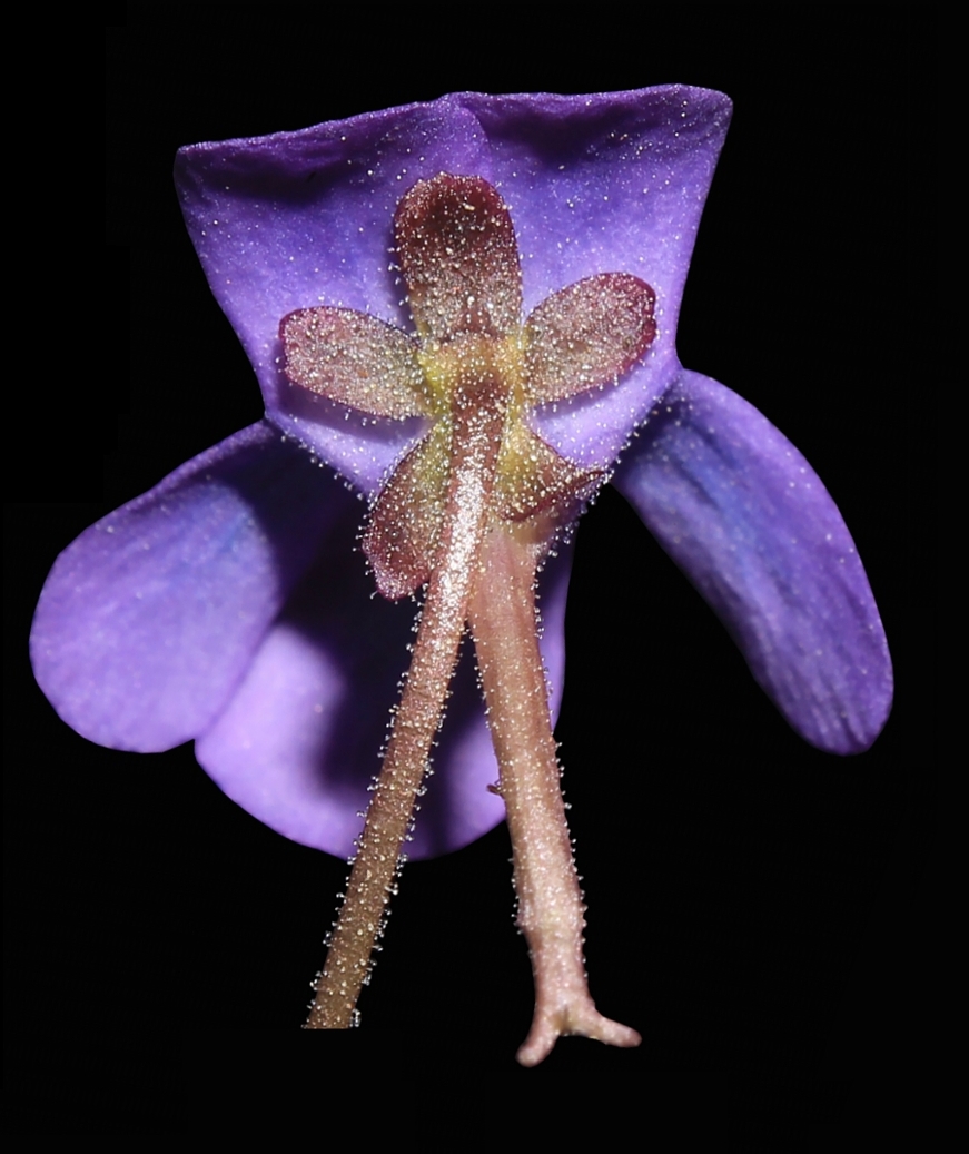 Stängel 5 - 10 cm lang, +/- länger als die Blätter, spärlich drüsig, Blattrosette mit 4 - 6 Blättern