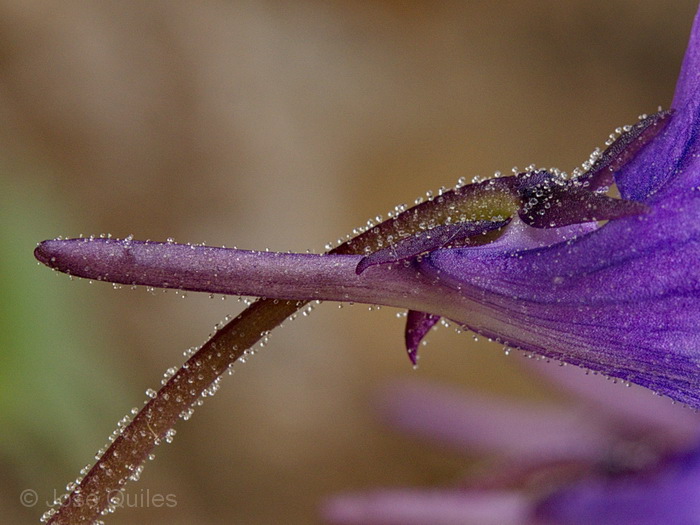 Sporn 9 - 14 mm lang, violett, +/- wie die Krone gefärbt, gerade, manchmal vorne gespalten