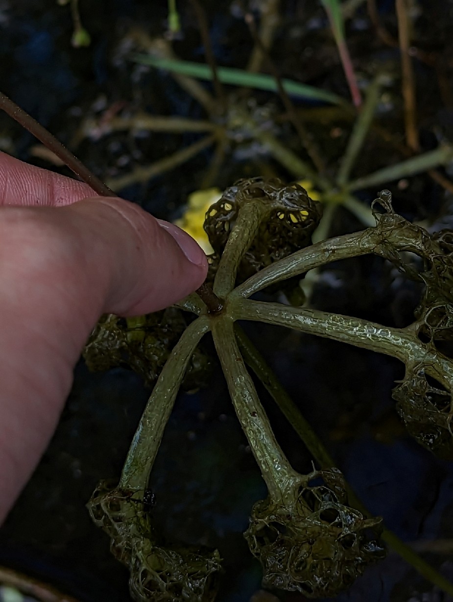 Zur Blütezeit wird ein Stern aus schwammigen Strukturen auf der Wasseroberfläche gebildet, welcher aus 6 - 8 Speichen besteht