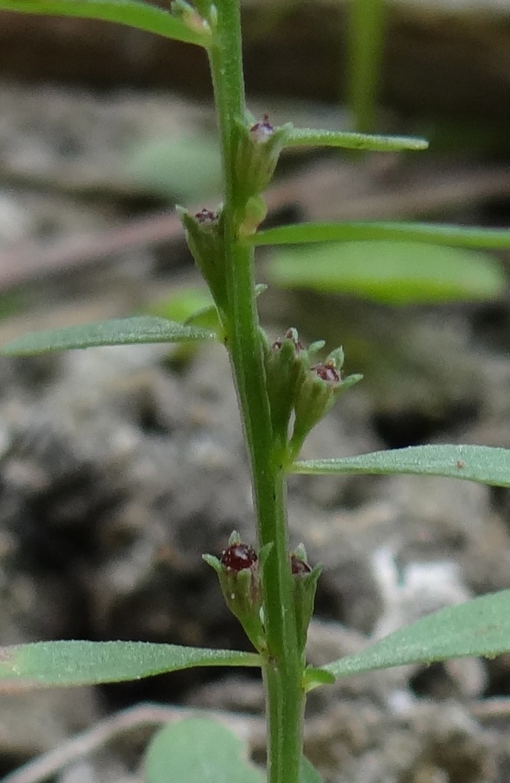 Blätter wechselständig, linealisch, 5 - 8 mm lang, 1 - 2 mm breit, zugespitzt