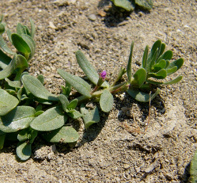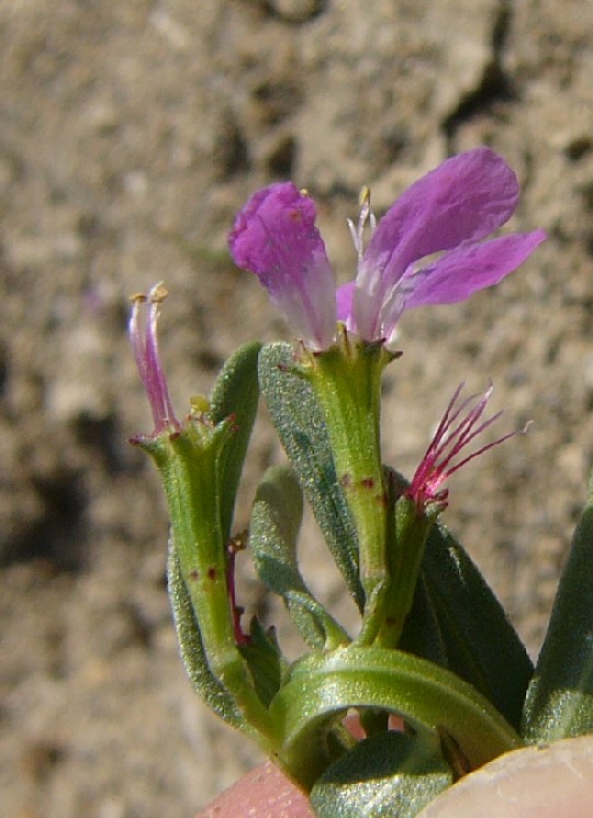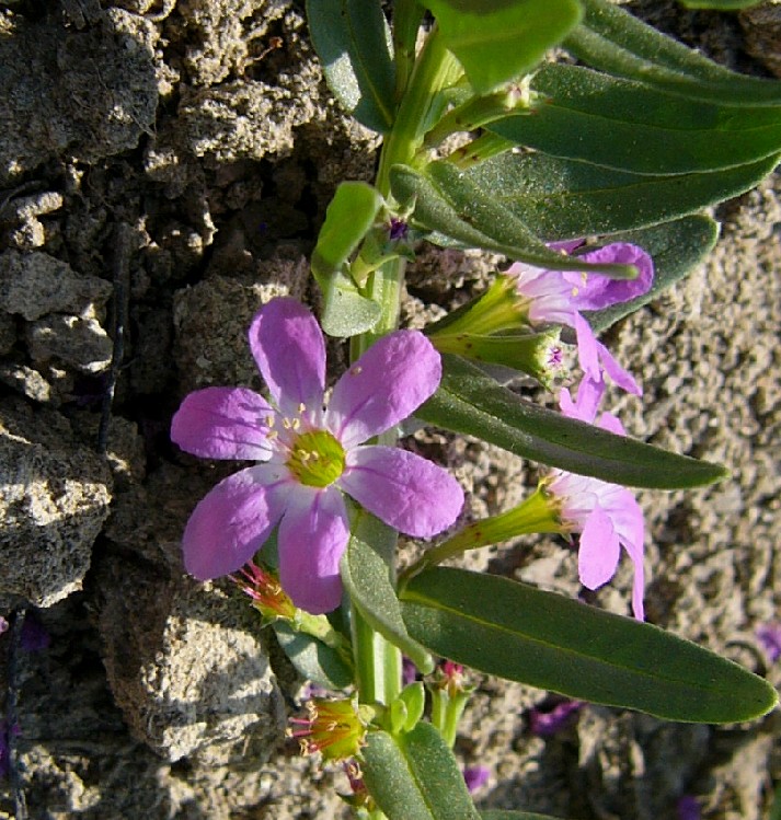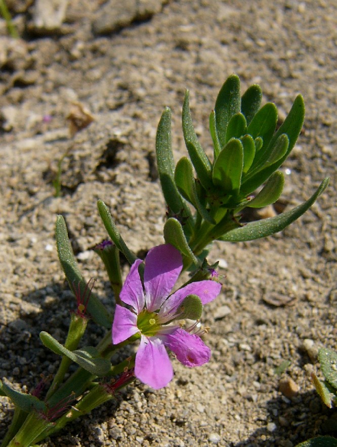 Pflanze 5 - 30 cm groß, Blüten purpurrot, einzeln, achselständig Blüten mit 6 rosafarbenen Kronblättern Blüten mit 12 unterschiedlich langen Staubblättern,
