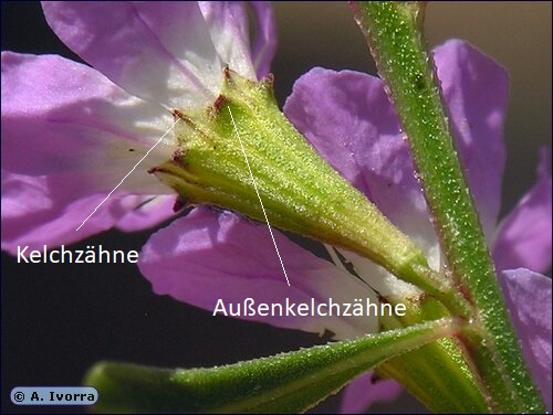 Rippen Außenkelchzähne des Blütenbechers halb so lang wie die Kelchblätter > 4