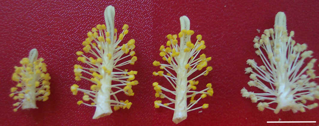 Staubfäden 4 - 6 mm lang, die oberen länger als die unteren, Staubbeutel cremefarben