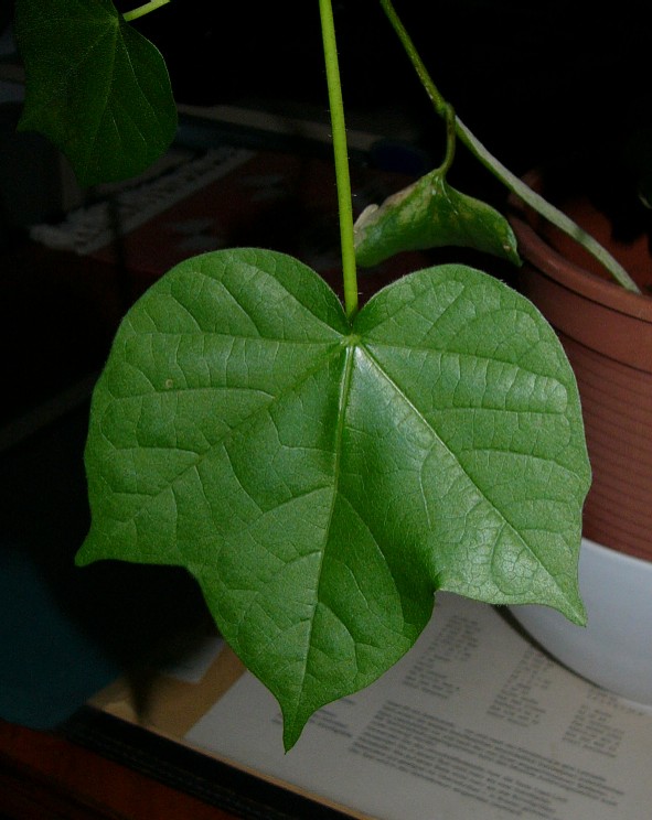 Blätter 6 - 15 cm lang, handförmig 5- lappig, am Grund herzförmig, ganzrandig oder gezähnt, filzig behaart oder verkahlend, Blattstiele 1/2 bis so lang wie die Blattspreite, Nebenblätter 4 - 7 mm lang