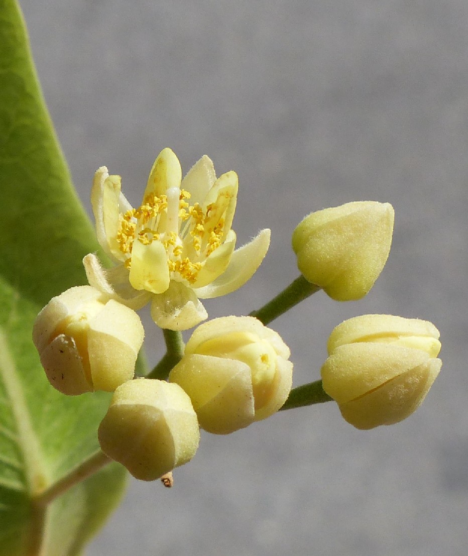 Blüten meist zu 5 - 10 in einer sternhaarigen Trugdolde
