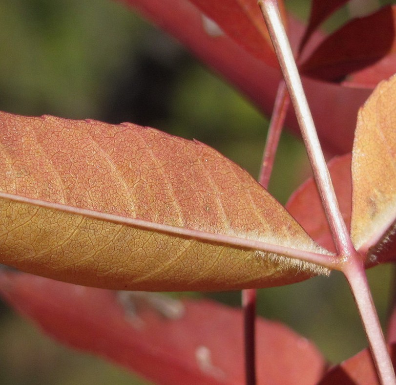Blättchen am Grund unterseits entlang der Mittelrippe behaart, selten verkahlend
