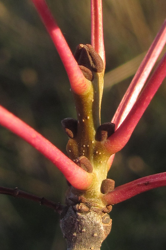 bräunlich- rot, Blätter mit 5 - 7 Blättchen, Blattader am Grund unterseits kahl > 3