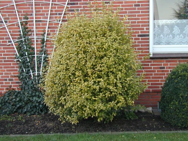Pflanze winter- oder immergrün Blätter oberseits dunkelgrün, in Sorten mit gelbem oder weißem Rand > 4