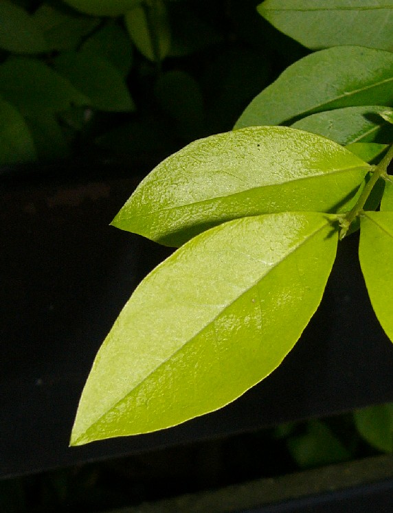 Blätter elliptisch- lanzettlich, oberseits dunkelgrün, unterseits